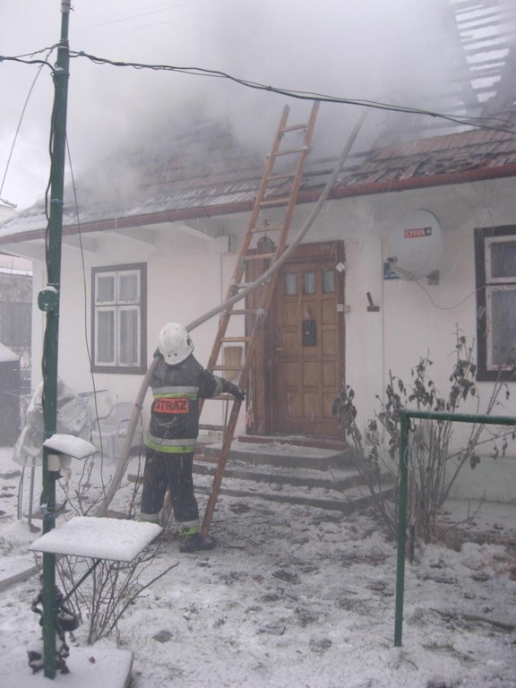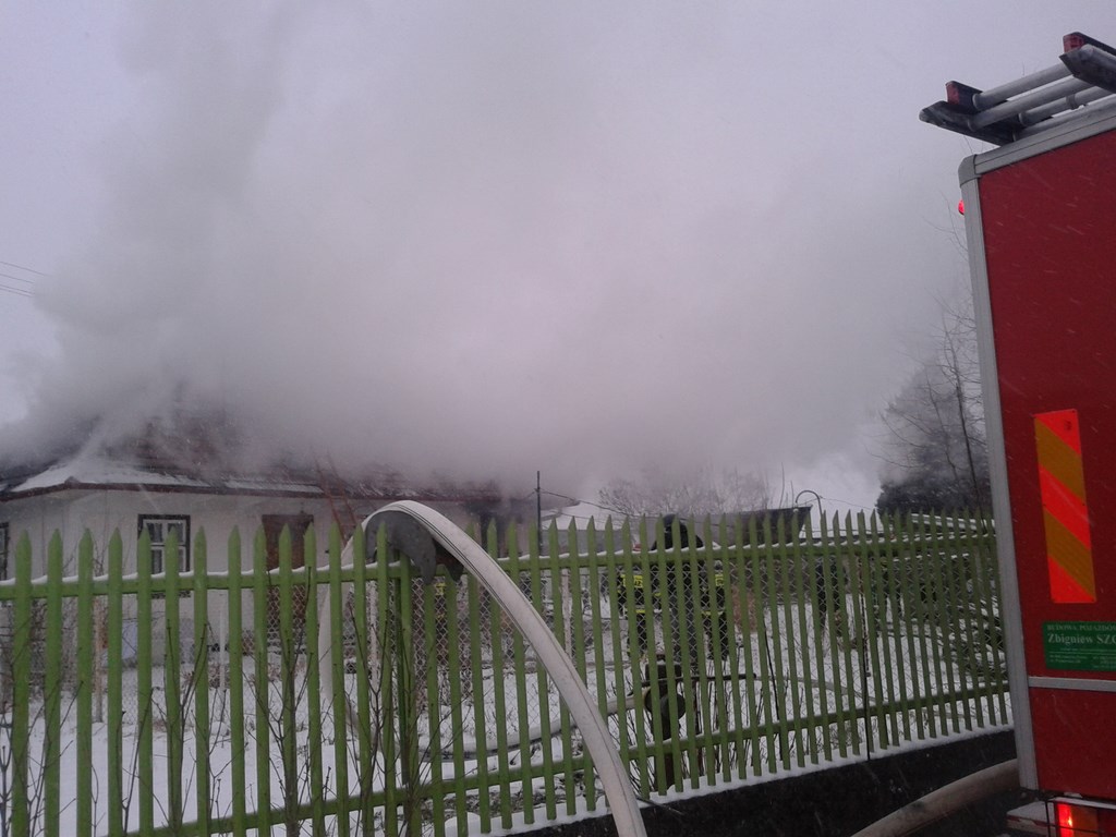 Do akcji skierowano zastępy z JRG Brzesko oraz z OSP Jadowniki. W momencie przybycia na miejsce pożarem objęty był dach budynku oraz jedno z pomieszczeń. Po odcięciu zasilania podano dwa prądy wody w natarciu z jednoczesnym wprowadzeniem ratowników w aparatach powietrznych do budynku. Po opanowaniu rozwoju pożaru strażacy dokonali częściowej rozbiórki nadpalonych elementów oraz przerzucenia i przelania pogorzeliska. Działania w trudnych warunkach pogodowych trwały blisko 4 godziny. Zniszczenia są spore, a rodzina niestety utraciła dorobek życia.