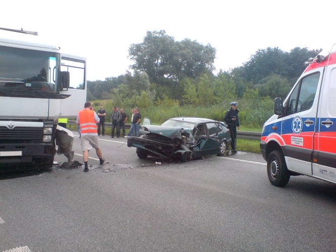 W sobotę 13 sierpnia około godziny 07:30 na drodze K-75 w miejscowości Uszew kierujący samochodem ciężarowym Scania prawdopodobnie w wyniku pęknięcia opony stracił panowanie nad pojazdem.